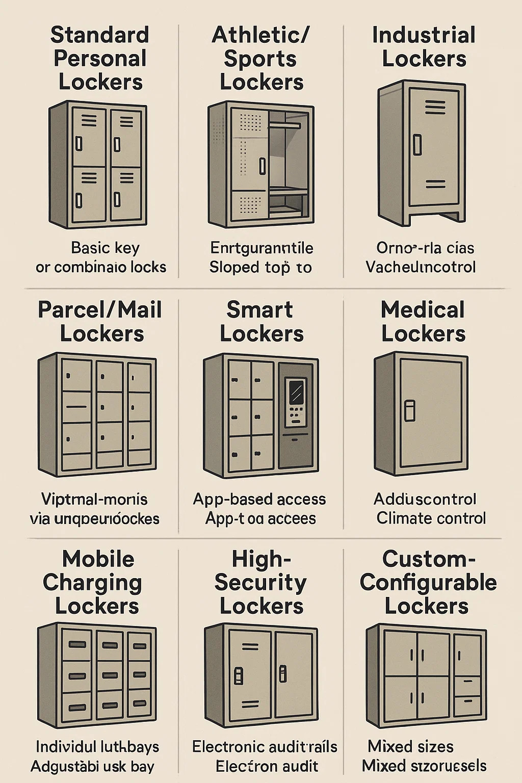 Casiers à portes pleines : portes métalliques solides (intimité maximale).