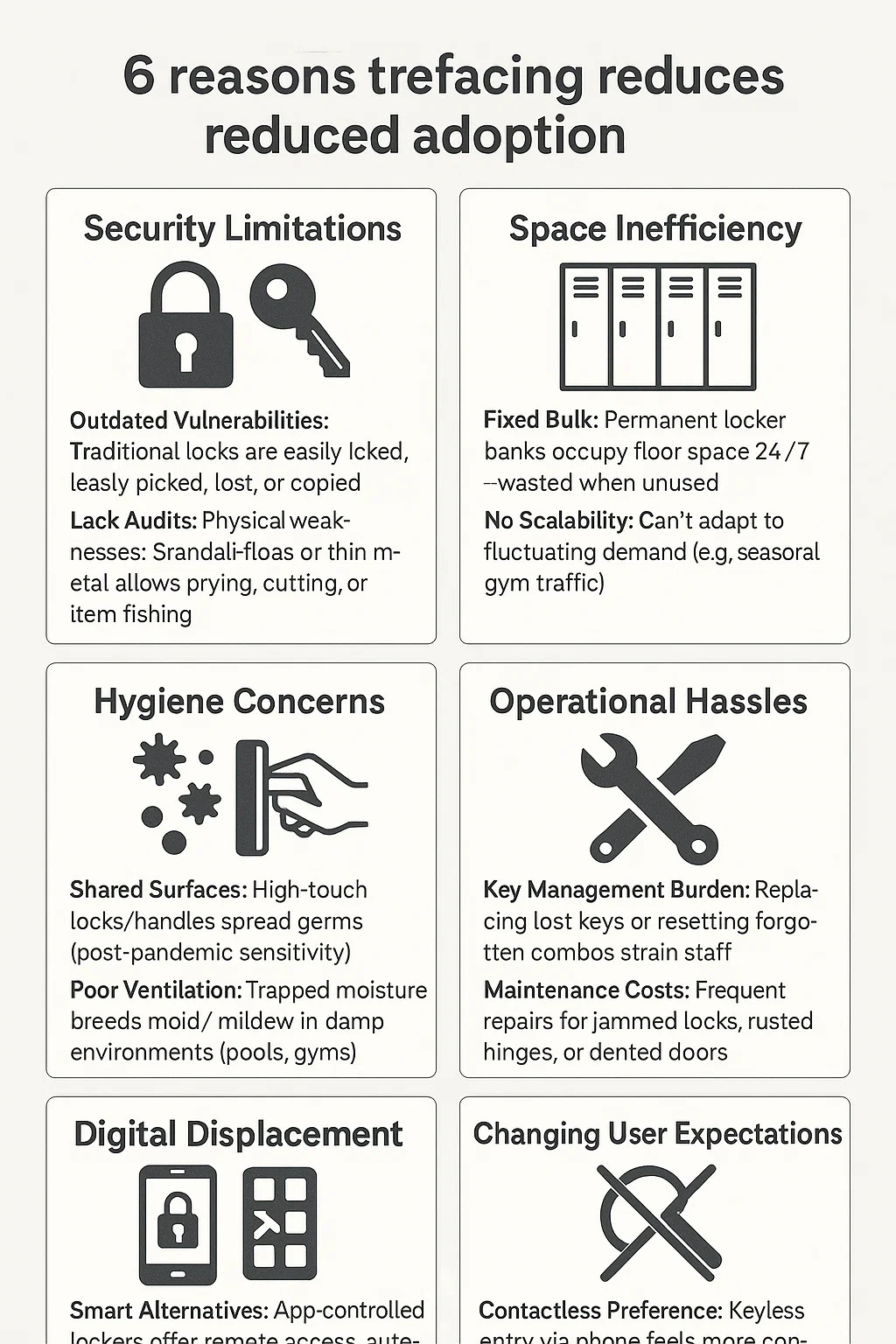 Fardeau de gestion des clés : le remplacement des clés perdues ou la réinitialisation des combos oubliés mettent le personnel à rude épreuve.
